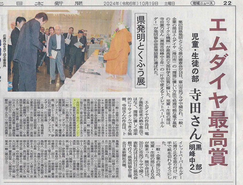 「つけたま飲めるマスク」が受賞しました 2025年2月27日 最終更新日時 : 2025年2月27日 koshinaka 先日開催されました【第62回富山県発明とくふう展、一般・企業の部】におきまして当社が開発・特許取得をした「つけたま飲めるマスク」が高岡市長賞を受賞しました。